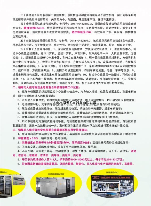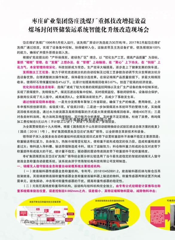 本產(chǎn)品一經(jīng)推出即獲得各大設(shè)計院及用戶的一致好評,率先在棗礦集團岱莊煤礦取得成功應用,2018年9月受邀參加了《棗礦集團煤場封閉暨儲裝運系統(tǒng)智能化升級改造現(xiàn)場會》,智能裝車系統(tǒng)得到了充分肯定!我司憑借雄厚的加工制造實力及過硬的創(chuàng)新技術(shù)能力,勢必為運輸稱重系統(tǒng)、快速計量裝車系統(tǒng)帶來又一次的技術(shù)創(chuàng)新變革。